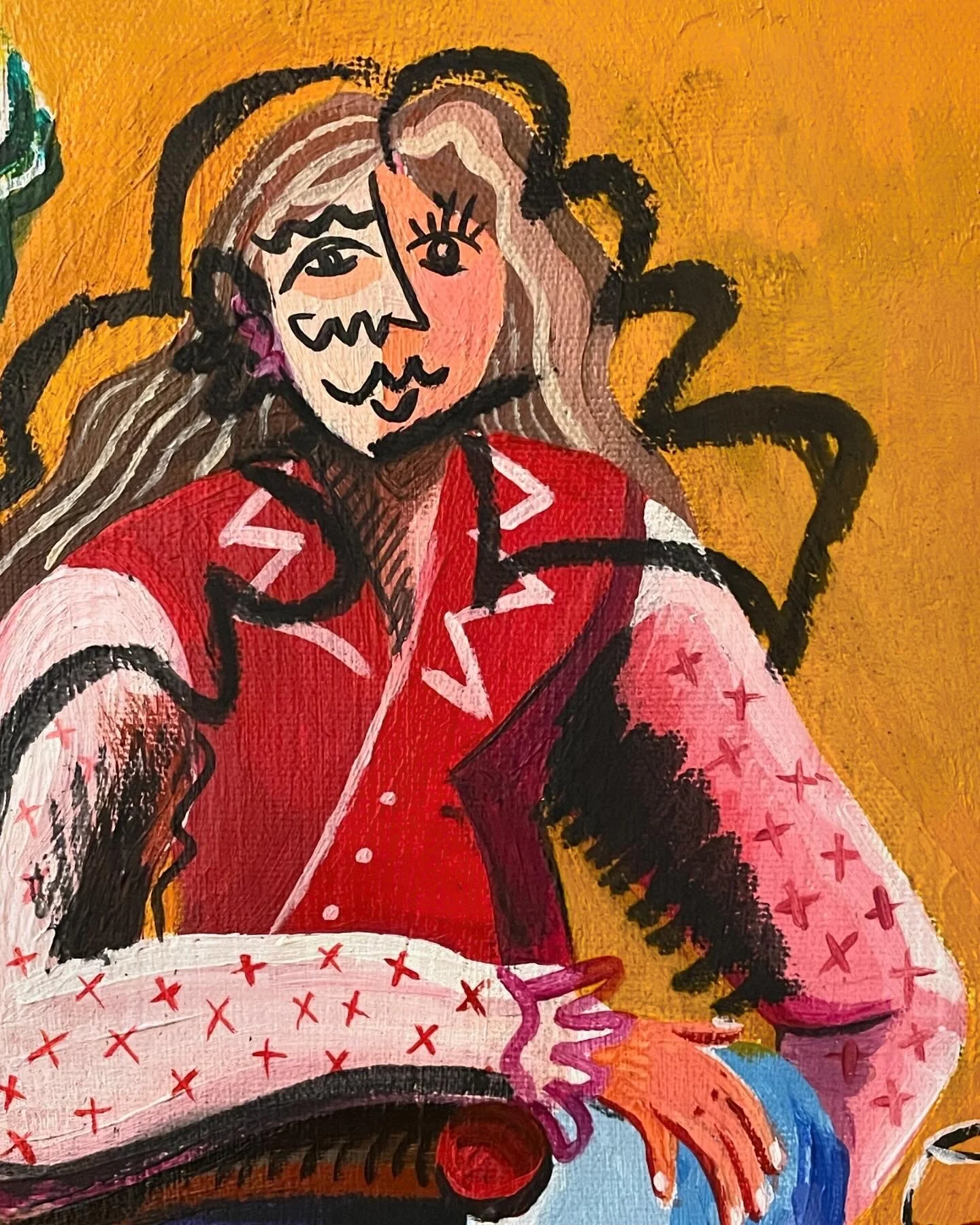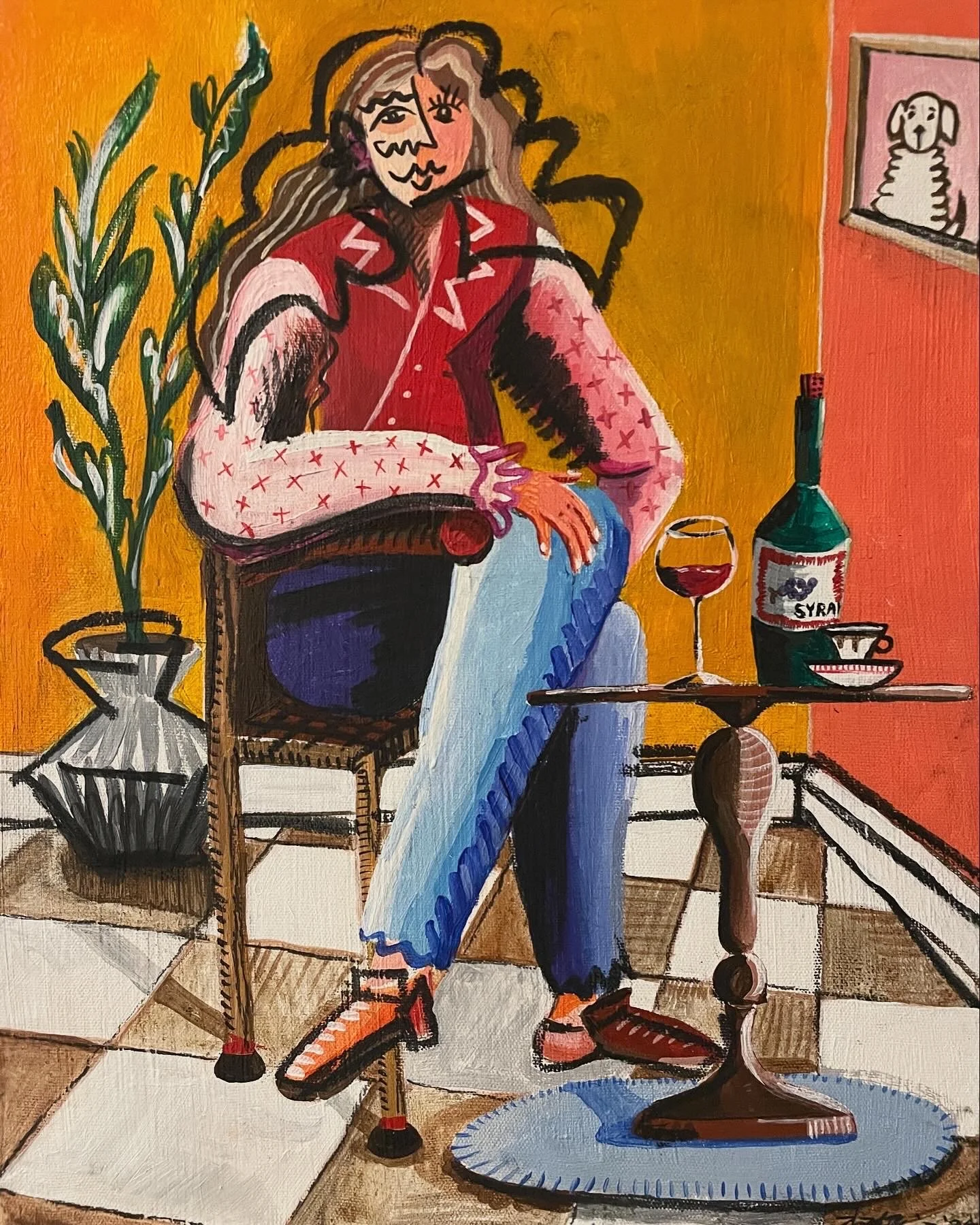Slide 1 Slide 1 (current slide) Slide 2 Slide 2 (current slide) Slide 3 Slide 3 (current slide) ACRYLIC PAINT AND CHARCOAL ON CANVAS _ 14"X11" hakata, fukuoka 2024 Sit Back, Sip That